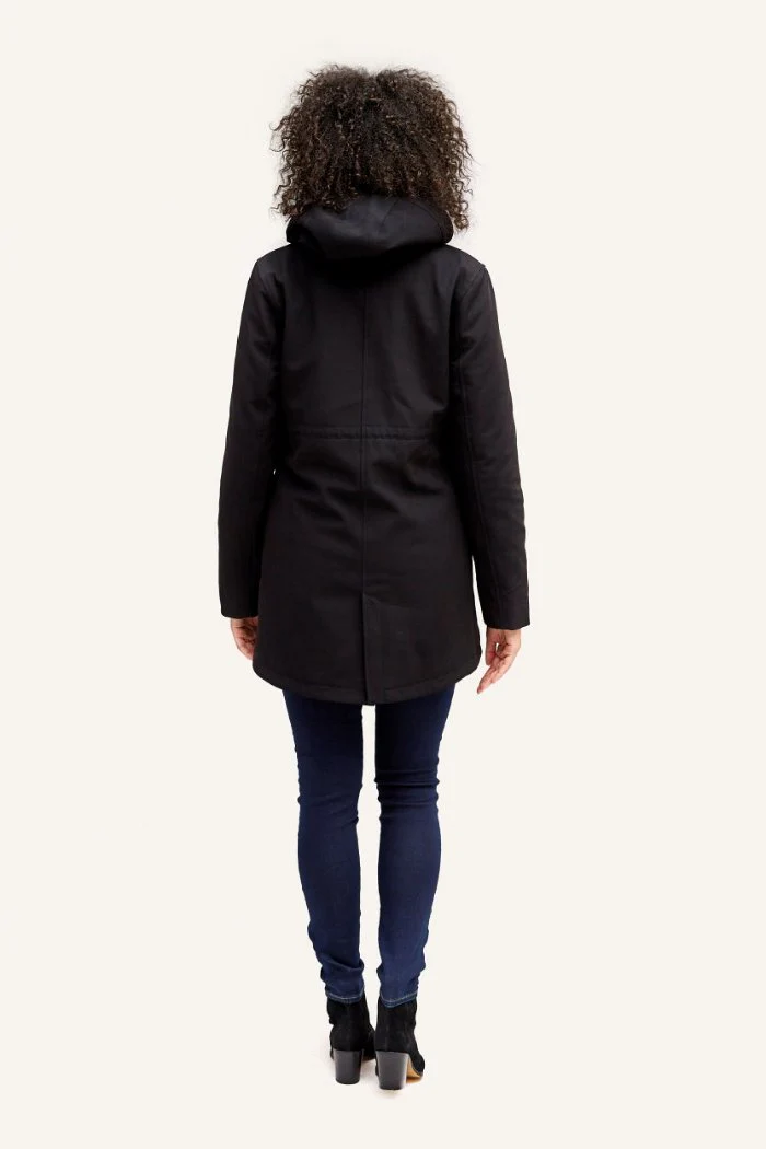 Designed to fit through every stage of pregnancy and after, this coat does it all. The 3-in-1 coat comes with a detachable hood and 2 zip in/out panels that grow with you. Wear the panel during your bump days or over a front carrier to keep baby warm and dry postpartum. Interior elastic drawstring cinches to define your waist postpartum and opens to accommodate a growing bump.
