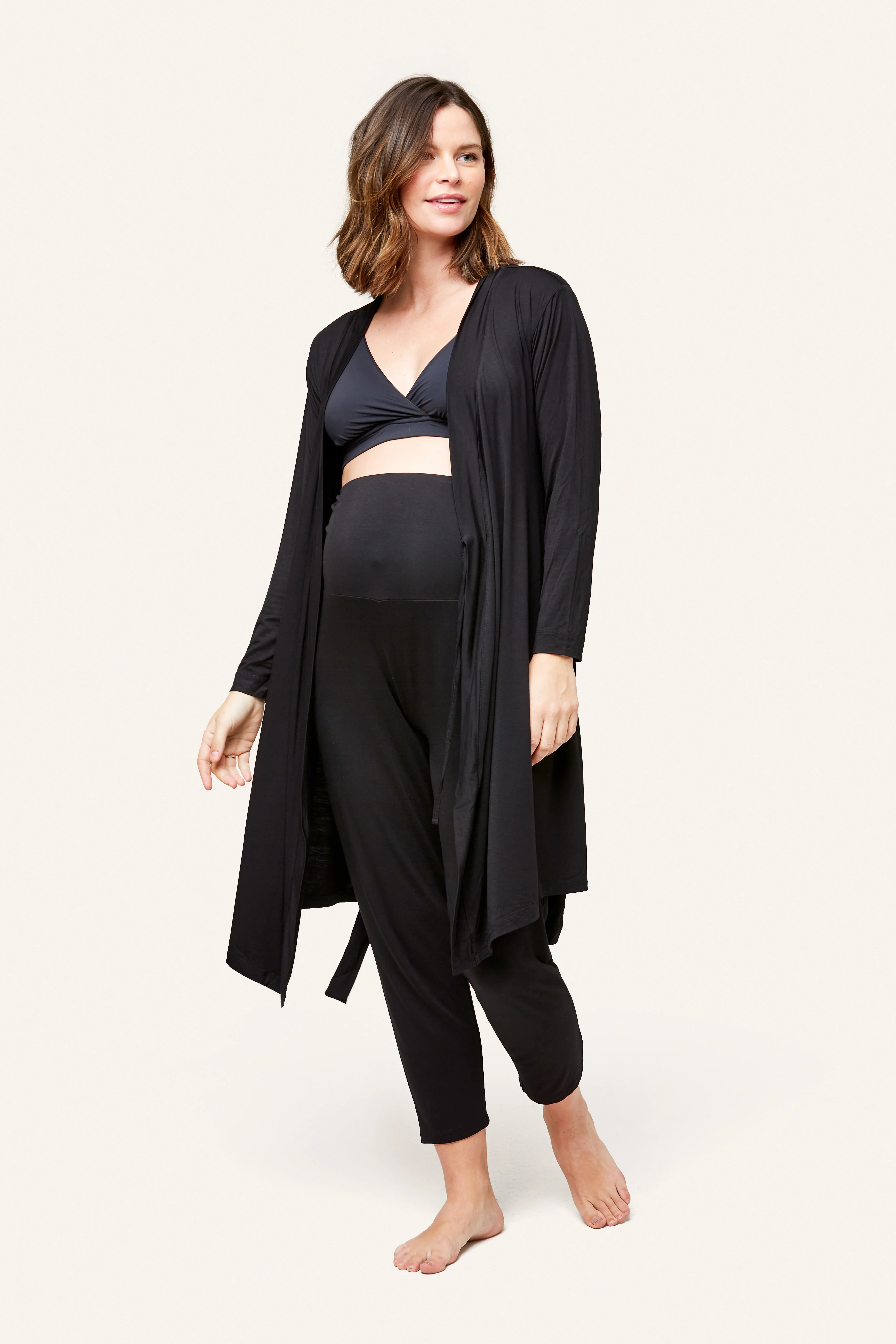 We designed our super soft maternity + nursing robe to grow with your belly AND fit postpartum.Ā This softer-than-soft robe is so nice you can greet guests in it (just remind them where the dishes are). Pair back to our lounge collection for a perfect hospital bag wardrobe.